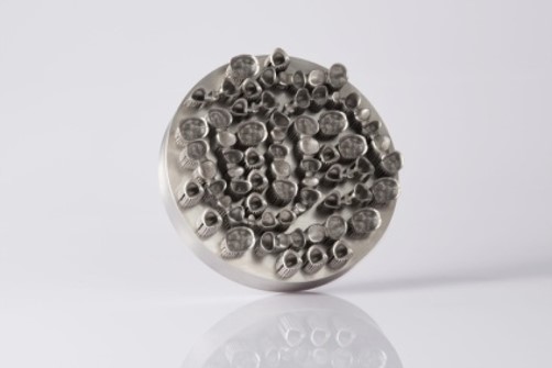 Usando el proceso (DMLS) Direct Metal Laser Sintering. Usa un dispositivo laser de alta potencia que se encarga de fusionar las partĆculas de polvo metĆ”lico de diferentes materiales hasta formar la pieza final.